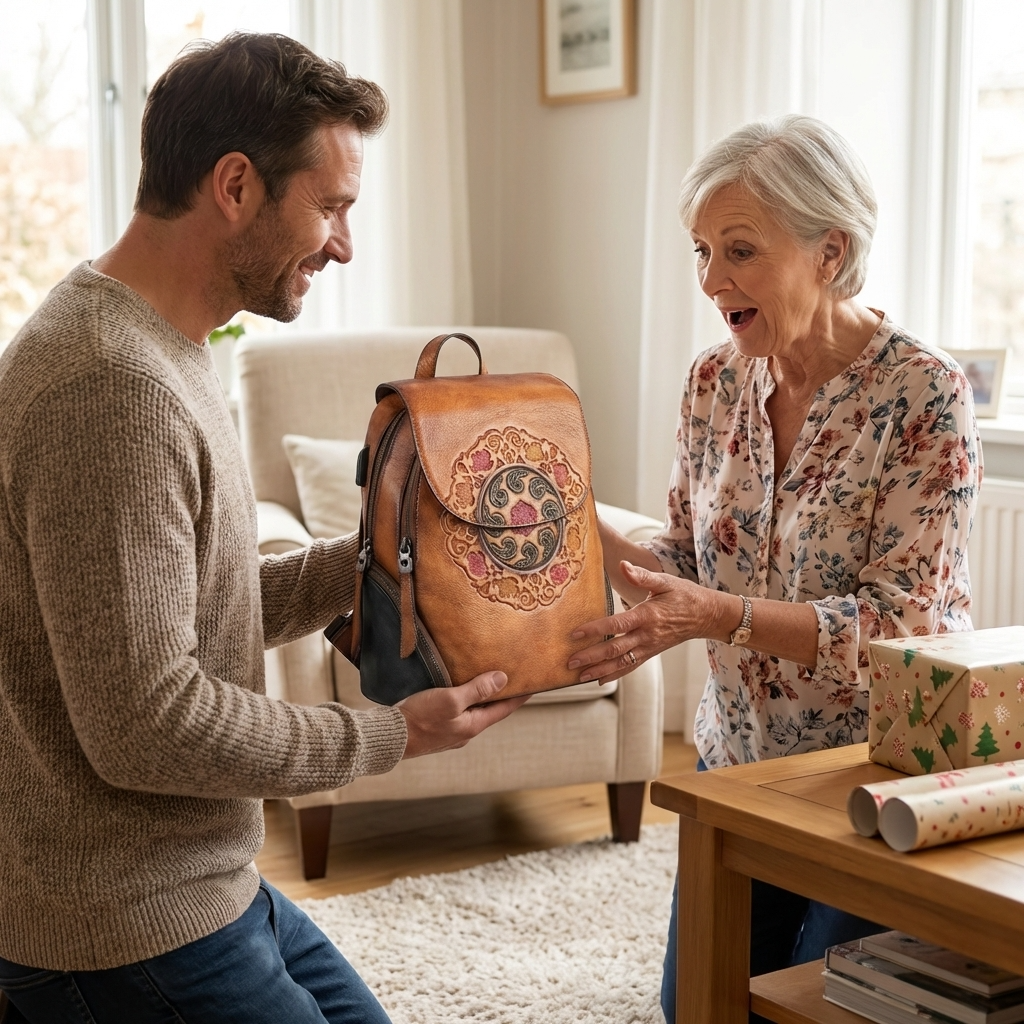 Vintage Embossed Women Leather Backpack