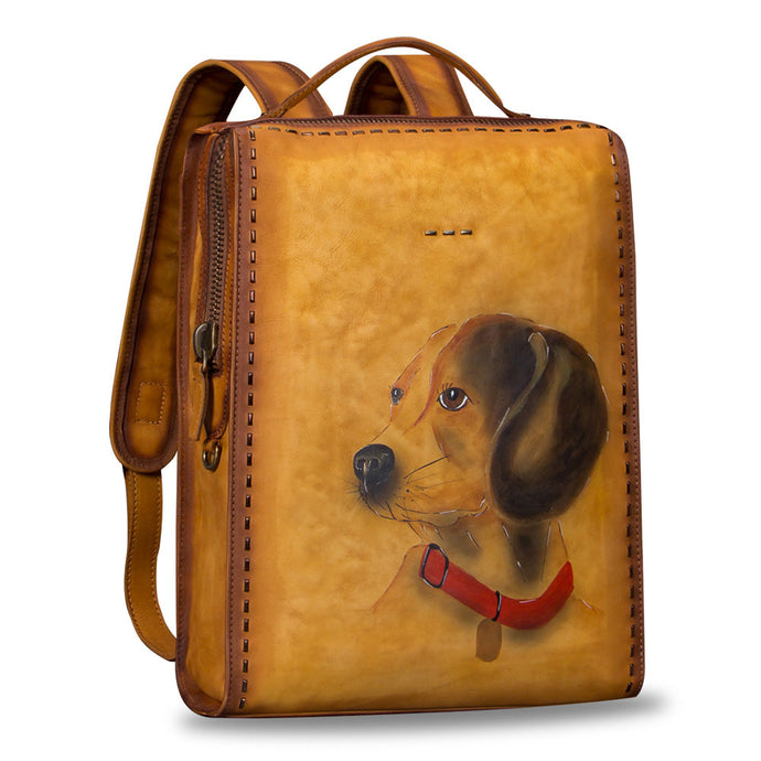 Art Leather Backpack Hand Painted Handmade Satchel Casual Daypack