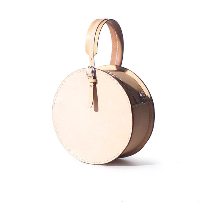 Small Women's Leather Circle Crossbody Bag Round Purse for Women