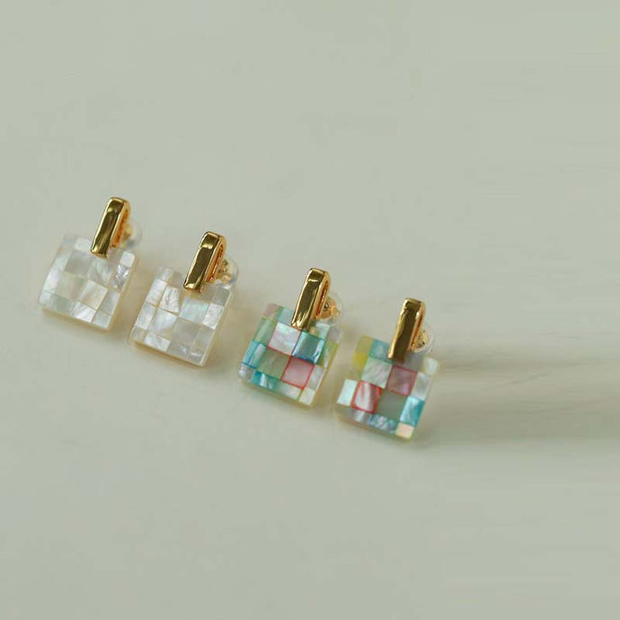 Square Checkerboard Geometric Pearl Mosaic Stud Earrings