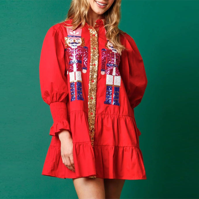 Collared Neck Flounce Sleeve Bow Mini Dress