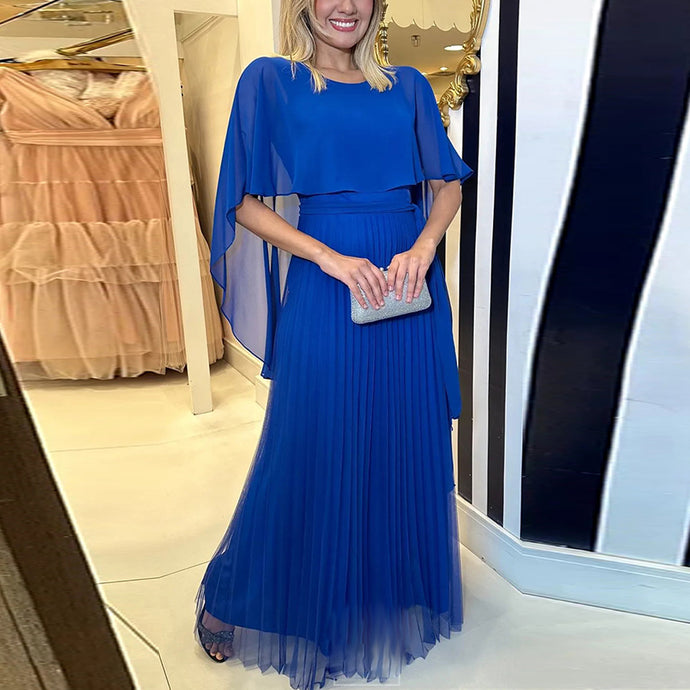 Ready for Holiday Cape Sleeve Tie-up Pleated Maxi Dress
