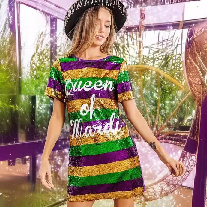 Mardi Gras Sequin T-Shirt Dress
