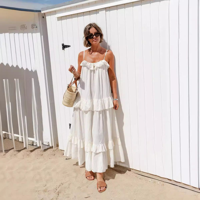 Simple Spaghetti Straps Ruffle Tiered Maxi Dress