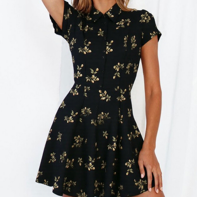 Retro Floral Short Sleeves Slit Side Midi Dress