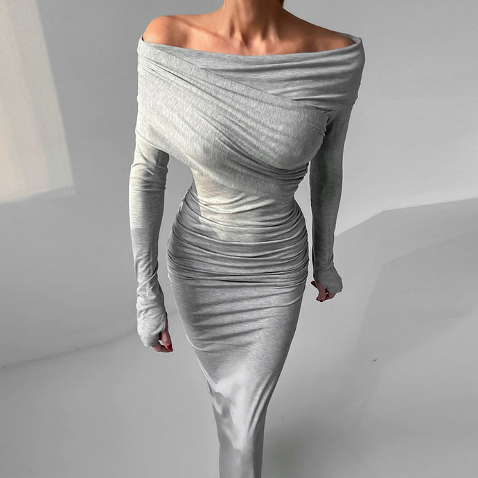 Sexy Ruched Off Shoulder Long Sleeves Bodycon Maxi Dress