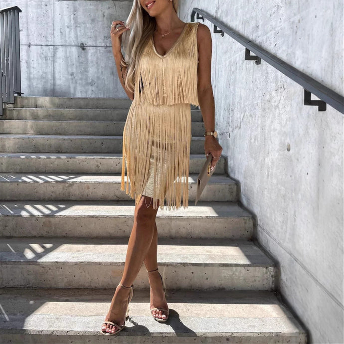 Sexy Tassel V Neck Sleeveless Mini Party Dress