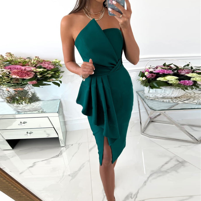 Sexy Asymmetrical Ruched Split Front Midi Dress