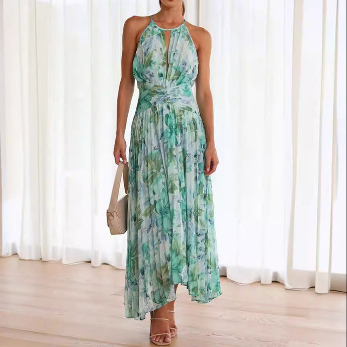 Sleeveless Asymmetric Pleated Split-Joint Midi Dress