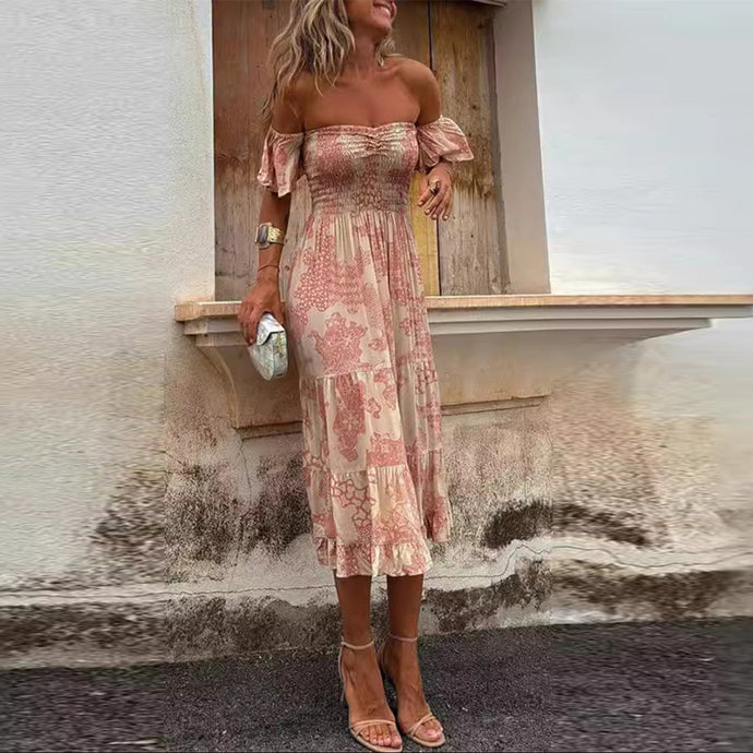 Sexy Floral Ruffle Off Shoulder Midi Dress