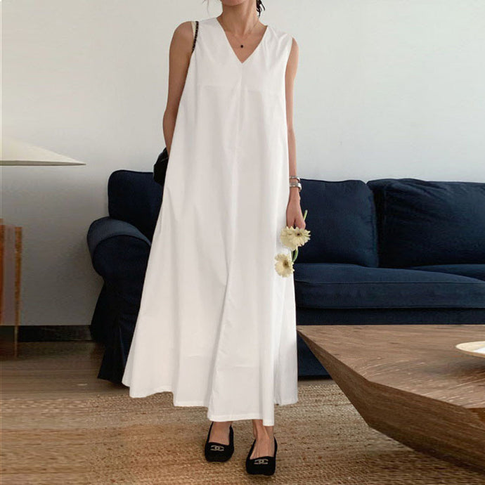 Simple Loose Sleeveless V-Neck Midi Dresses