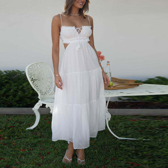 Sexy Spaghetti Straps Cut Out Tiered Midi Dress