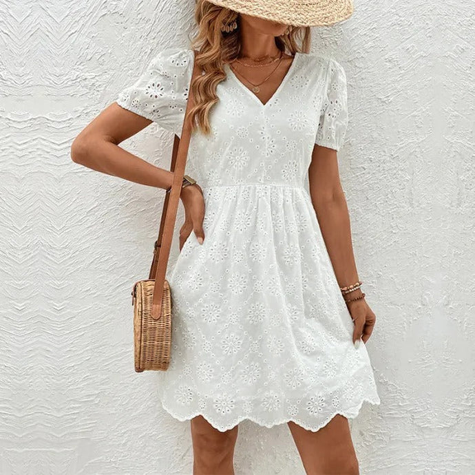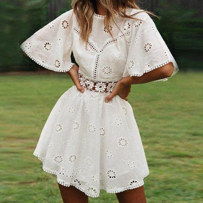 Floral Puff Sleeve Hollow Out Waist Mini Dress