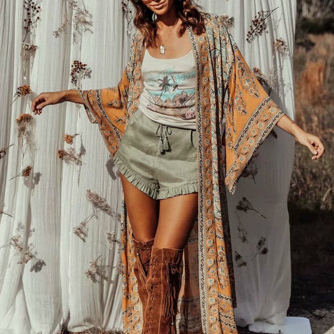 White Blue Floral Print Long Sleeves Buttons Down Maxi Dress