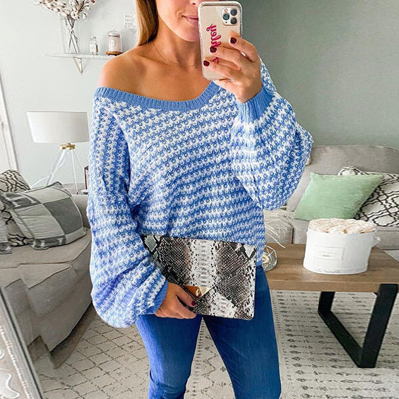 Oversized Stripe V Neck Puff Sleeve Sweater