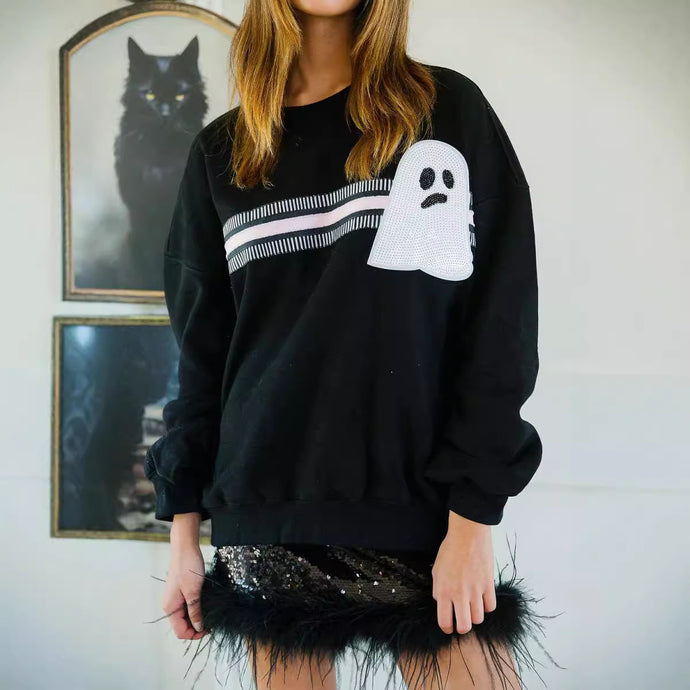 Halloween Ghost Time Black Pullover Sequined Sweatshirt