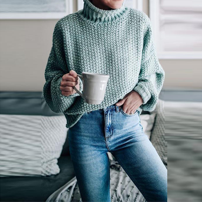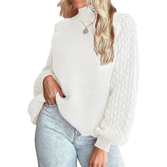 Trendy Chunky Warm Turtleneck Cable Knit Lantern Sleeve Pullover Sweater