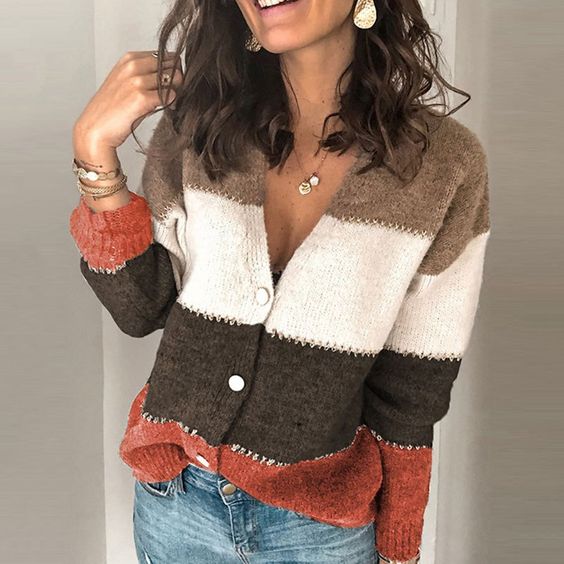 Contrast Letters Single-breasted Long-sleeved Knitted Cardigan