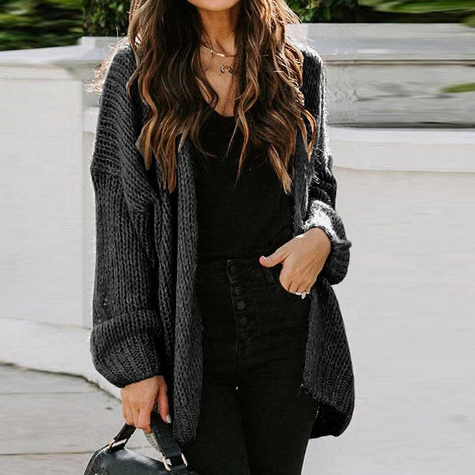 Simple Drop Shoulder Open Front Knit Oversized Sweater Cardigan
