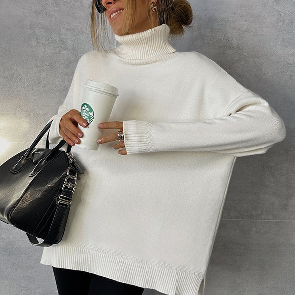 White Turtleneck Long Sleeves Loose Knit Sweater