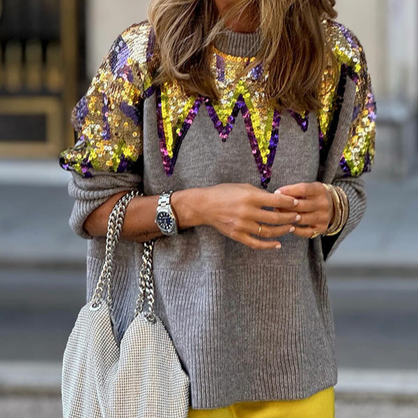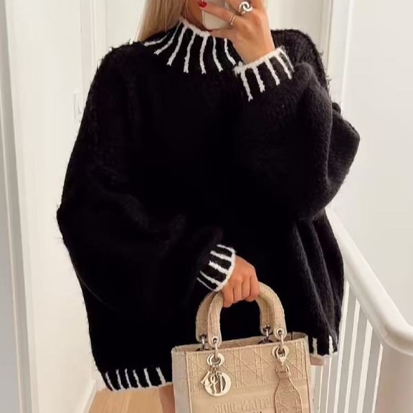 Loose and Slim Soft Long-sleeved Stitched Knit Sweater