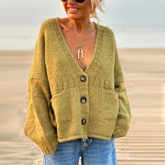 Loose V-neck Long-sleeved Casual Knitted Cardigan