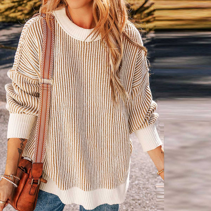 Loose Striped Print Crew Neck Long Sleeve Knitted Sweater