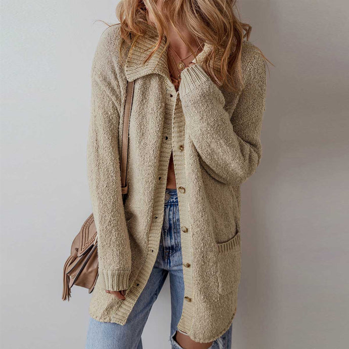 Casual Long-sleeved Loose Trimmed Knitted Cardigan