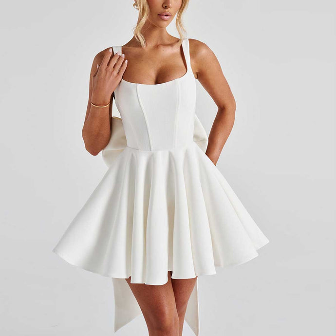 Pricess Square Neck Bow Mini Dress