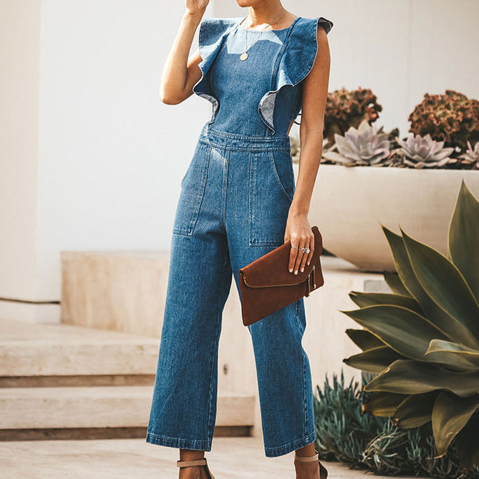 Casual Street Solid Buckle Flounce Mini Denim Dress