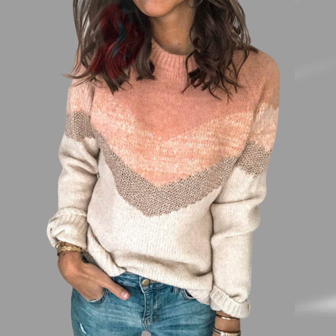 Geo Knitted V-neck Long Sleeve Sweater