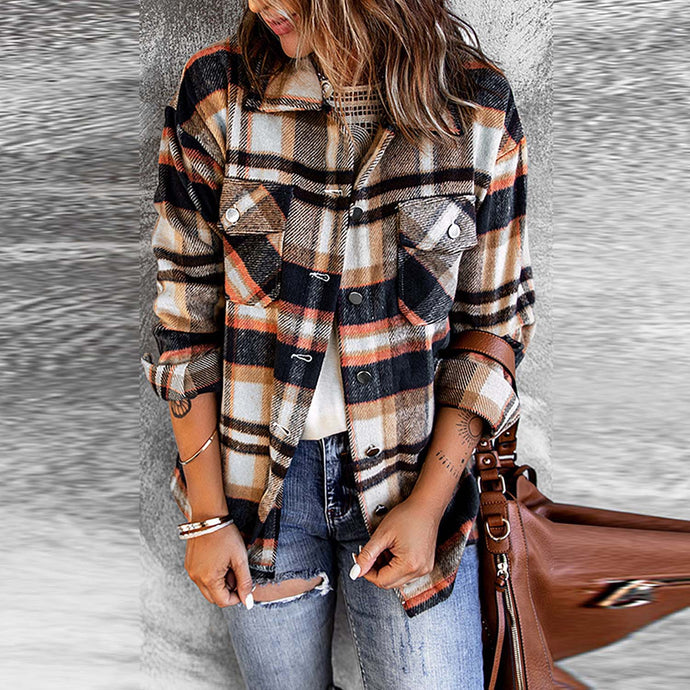 Plaid Button Front Shirt Jacket with Breast Pockets