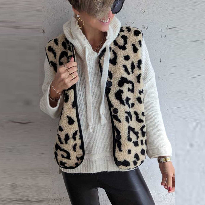 Leopard Print Casual Autumn and Winter Vest Jacket