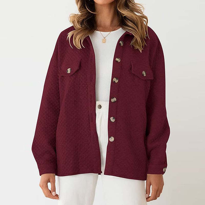 Simle Pockets Textured Roll Tab Sleeve Shirt Jacket