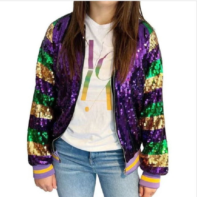 Sparkly Long Sleeve Trendy Party Club Mardi Gras Zipper Jacket
