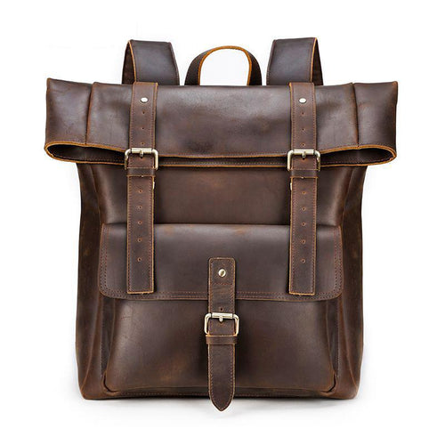 Vintage Genuine Leather School Backpack For Men 15.6 Inch Laptop Bag School Bag Overnight Weekender Camping Daypack Rucksack