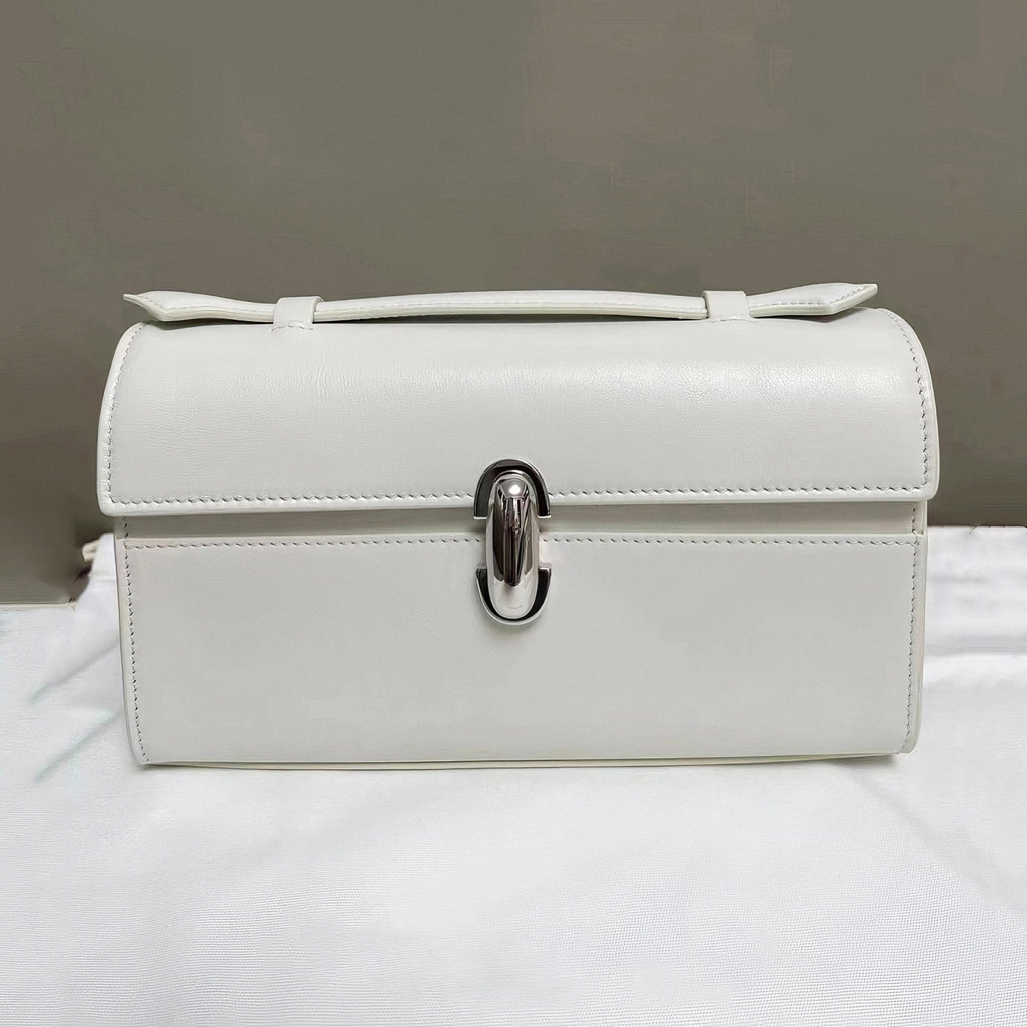 - This elegant clutch handbag is made with high-quality leather, perfect for a luxurious evening out. The small size makes it easy to carry, while the top handle provides added convenience. Elevate your style with this sophisticated and timeless accessory