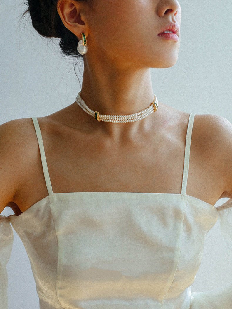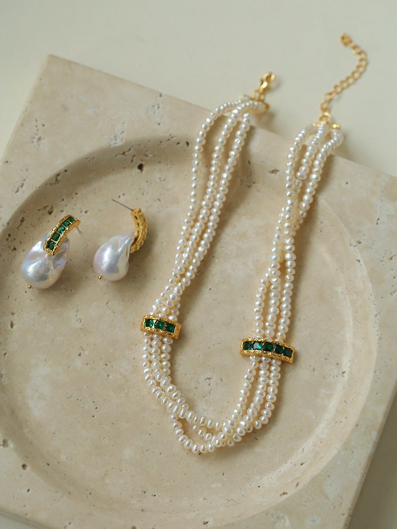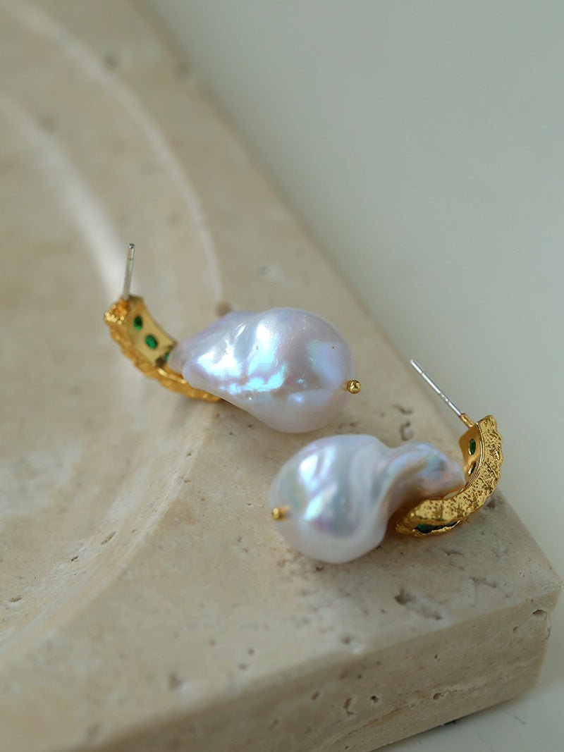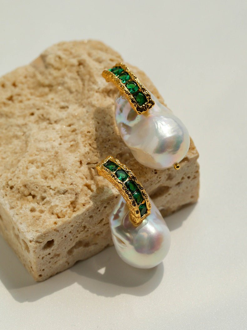 Elevate your accessory collection with these Green Cubic Zirconia Baroque Pearl Earrings. Each earring features a unique baroque pearl, complemented by vibrant green cubic zirconia stones that add a refined sparkle. The organic shape of the pearls offers a distinctive, sophisticated look, making them perfect for both formal occasions and elegant everyday wear. Crafted to highlight the natural beauty of the pearls and the brilliance of the stones, these earrings combine timeless elegance with contemporary style.