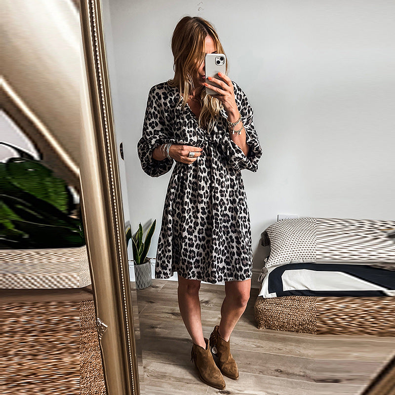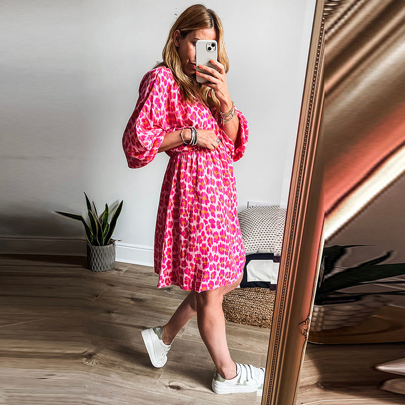 Flatter your neckline with a chic V-neck design that adds a touch of elegance to the dress.