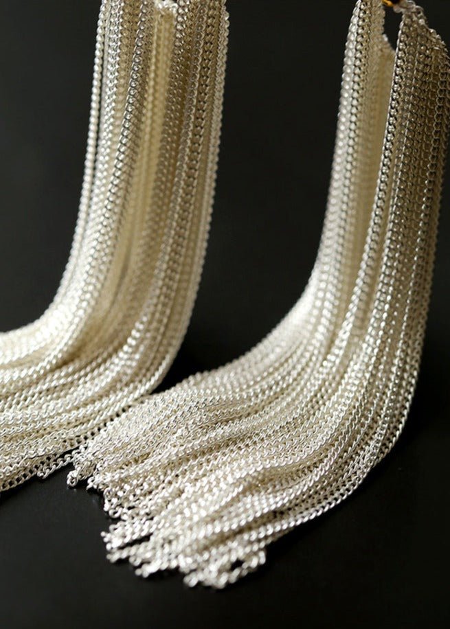 These Long Fringe Statement White Tassel Earrings offer a striking accent to any outfit with their elegant movement and crisp white hue. Crafted to deliver a bold yet refined look, they provide a versatile option for elevating both casual and formal styles. Lightweight and designed for comfort, these earrings showcase exceptional detail in their cascading tassel design, making them a sophisticated choice for those seeking to make a subtle statement.