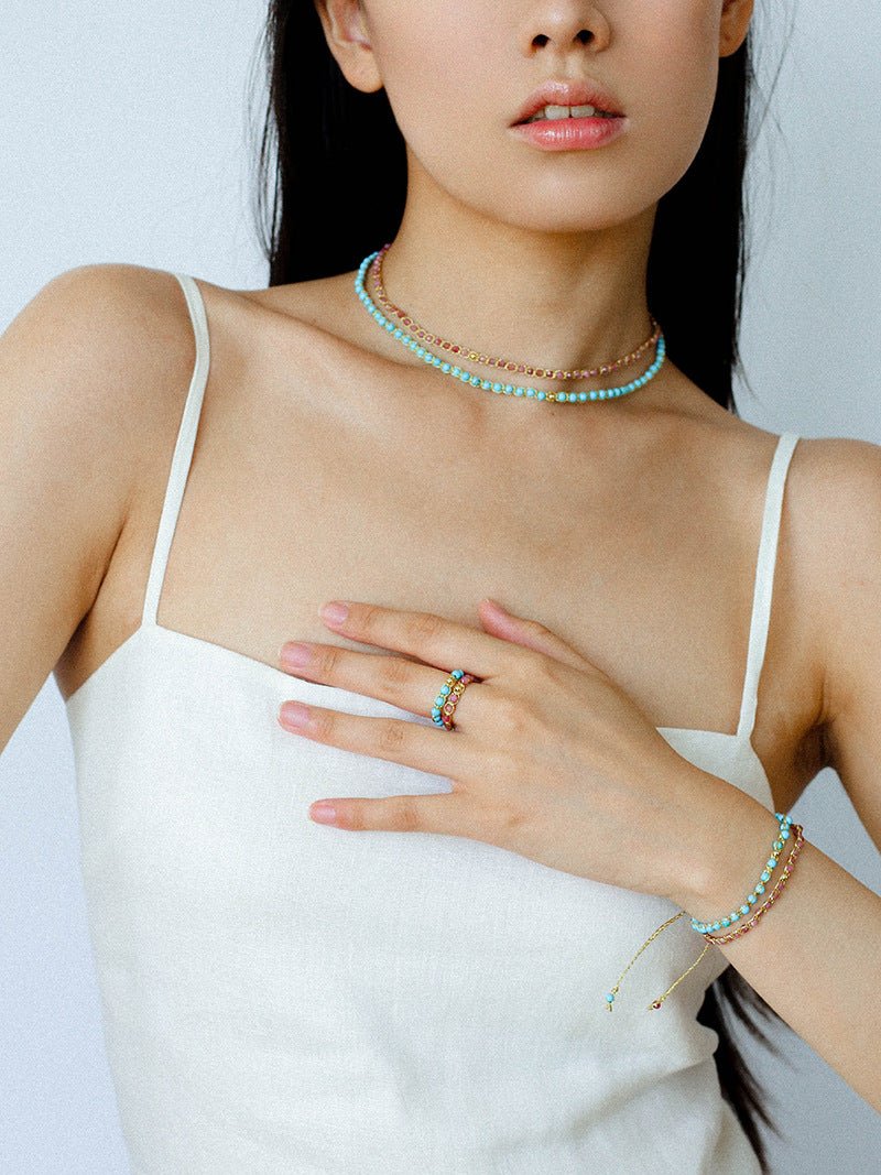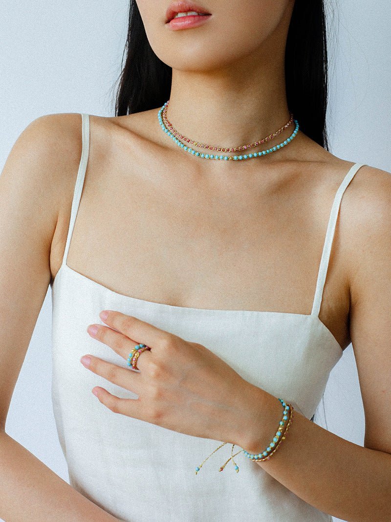 Enhance your style with this Turquoise Beaded Gemstone Braided Adjustable Necklace, crafted to offer both elegance and versatility. The natural turquoise beads provide a distinctive, earthy charm while the braided design ensures durability and texture. Its adjustable length allows for a customized fit, making it suitable for various necklines and occasions. Perfect for layering or wearing alone, this necklace seamlessly combines artisanal craftsmanship with timeless appeal.