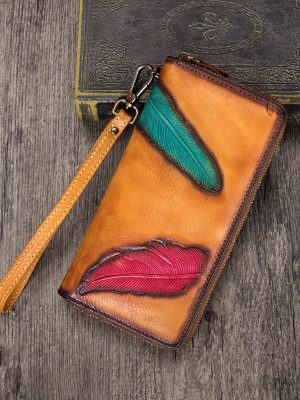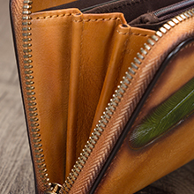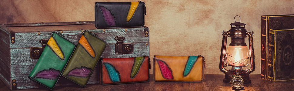 About This Wallet:This wallet is made manually from the genuine leather. After a special coloring process and embossing process, it made a unique retro style. Because of the special nature of natural leather and the coloring process, each wallet is unique.